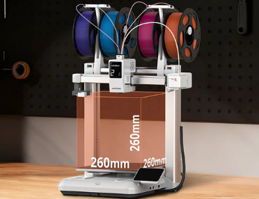 260 × 260 × 260 mm baskı hacmi sunan model, hem tek parça büyük baskılar hem de seri üretim senaryoları için yeterli bir çalışma alanı sağlıyor.