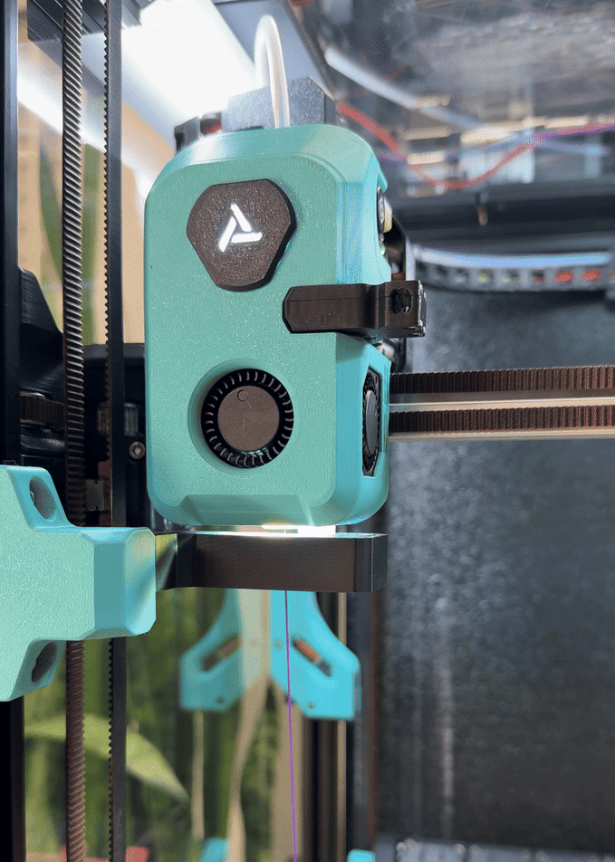 Alt yazı: Hitchcock Toolhead — Filament kesici ve çoklu renk baskısı desteğiyle gelişmiş toolhead tasarımı