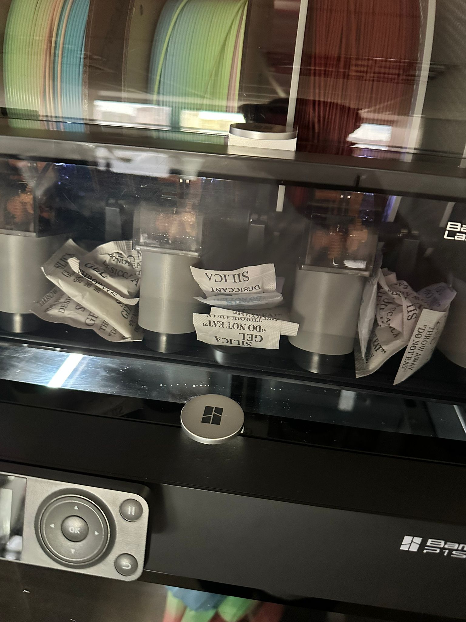 AMS içinde uzun süre kalan filamentlerin zamanla kırılma ya da baskı sırasında sorun çıkarma ihtimaline karşı, filamentlerle birlikte gelen küçük nem alıcı paketleri AMS’nin boş bölmelerine koymaya başladım. Mantıklı geldi çünkü içerideki havadaki fazla nemi en azından bir miktar azaltabileceğini düşündüm. Benim aklıma yatan bir çözüm oldu, fikir olarak da paylaşmak istedim.