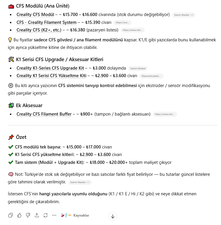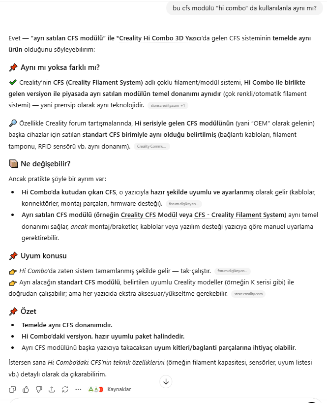 Yani Creality Hi Combo alıp CFS yi hiç kullanmasanız ve sıfır olarak satsanız, elinizde neredeyse bedavaya bir yazıcınız oluyor.