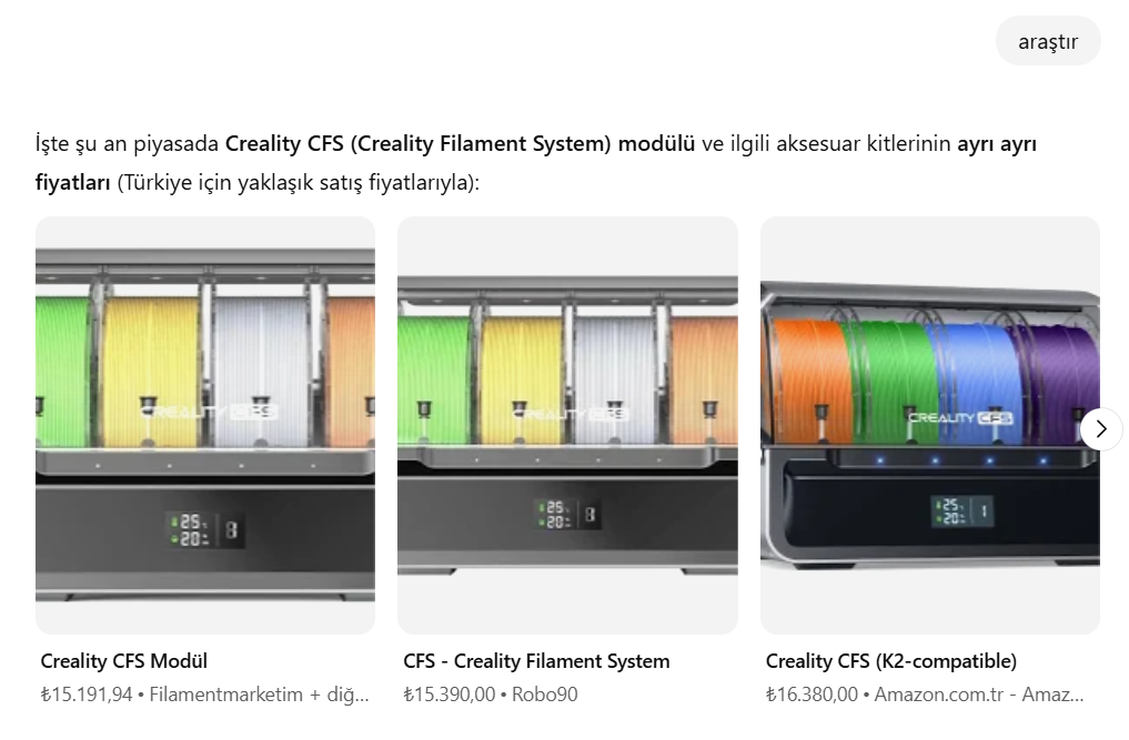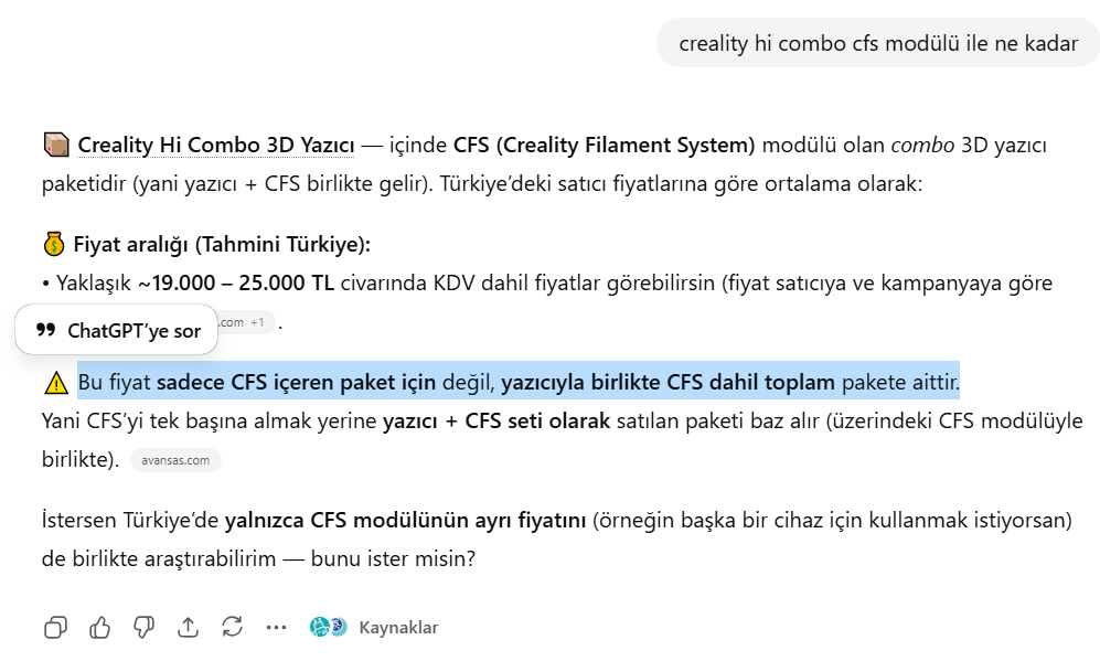 Topluluğumuzda sıklıkla bahsedilen Creality Hi Combo'yu biraz araştırdım. Özellikle fiyat konusunda şok oldum.