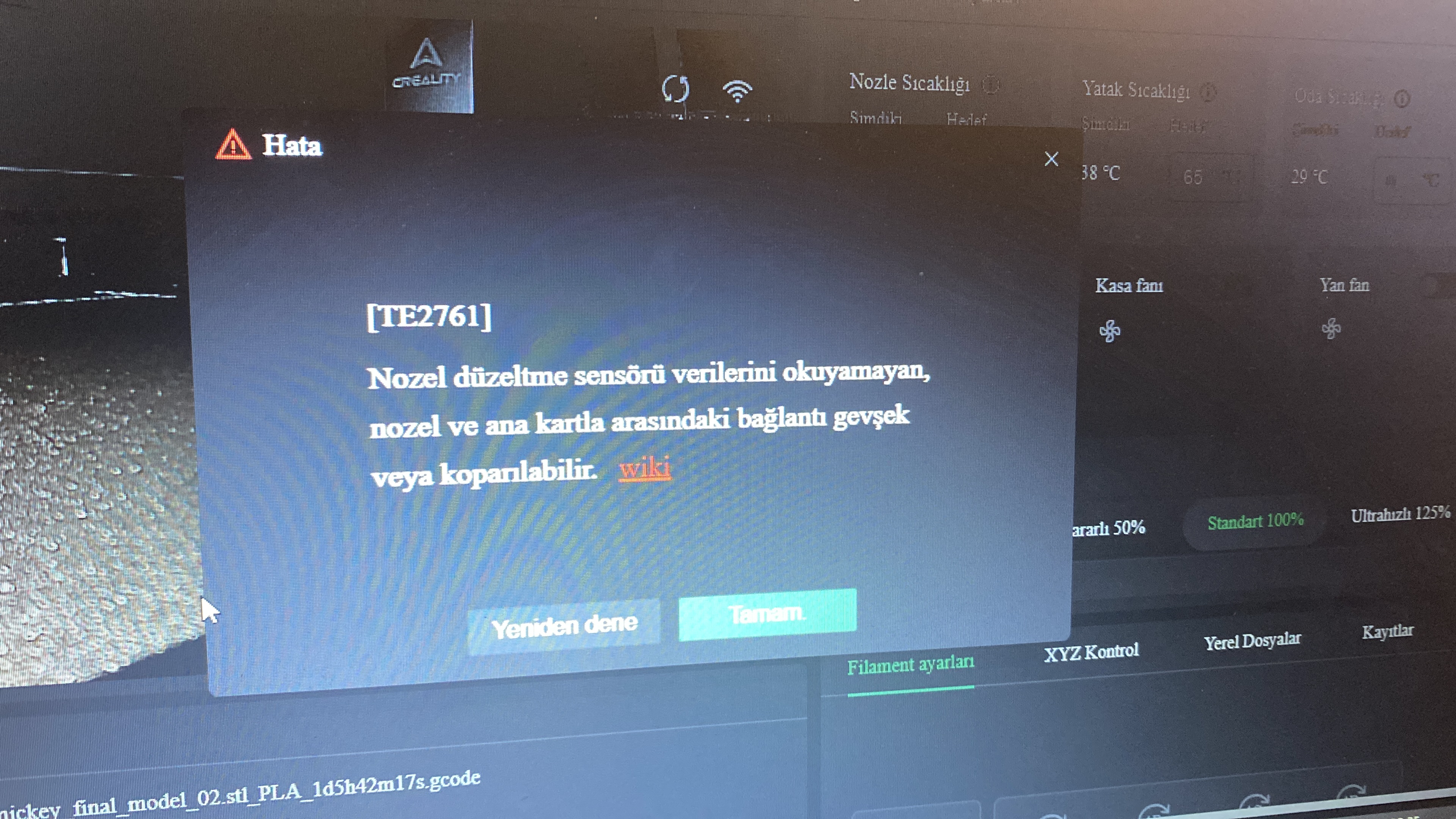 Creality K2 hata kodları