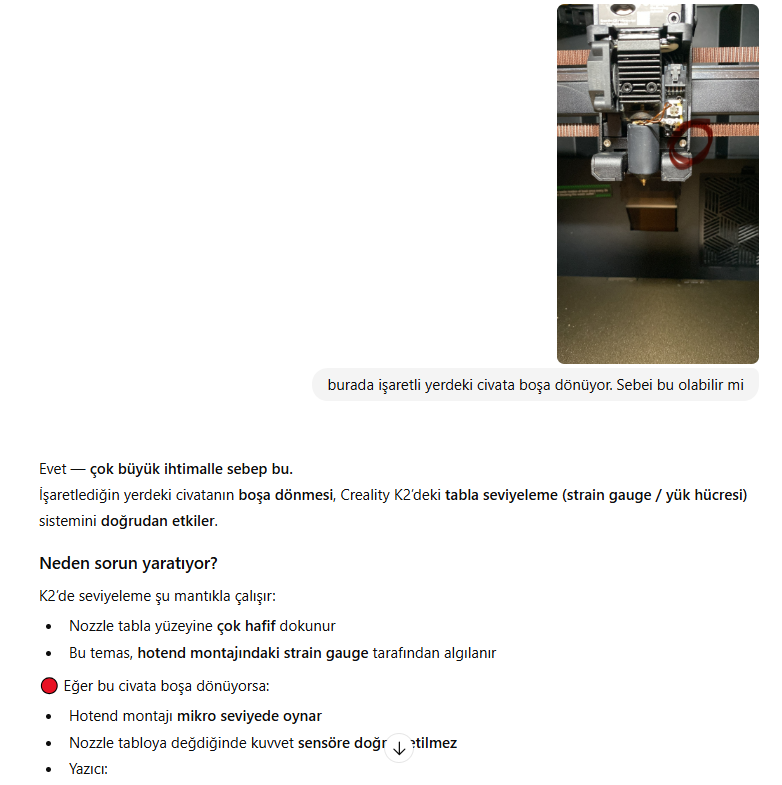@HectorSalamanca uzun bir cevap yazmıştım ama çıkmamış ilginç bir şekilde. Yazıcıyı fabrika ayarlarına çevirdim şuan sıkıntısı baskı alıyor bakalım. Bir sonraki baskıda yine sıkıntı yaşatırsa vida için önerilerinizi deneyeceğim. İlginiz için teşekkür ederim