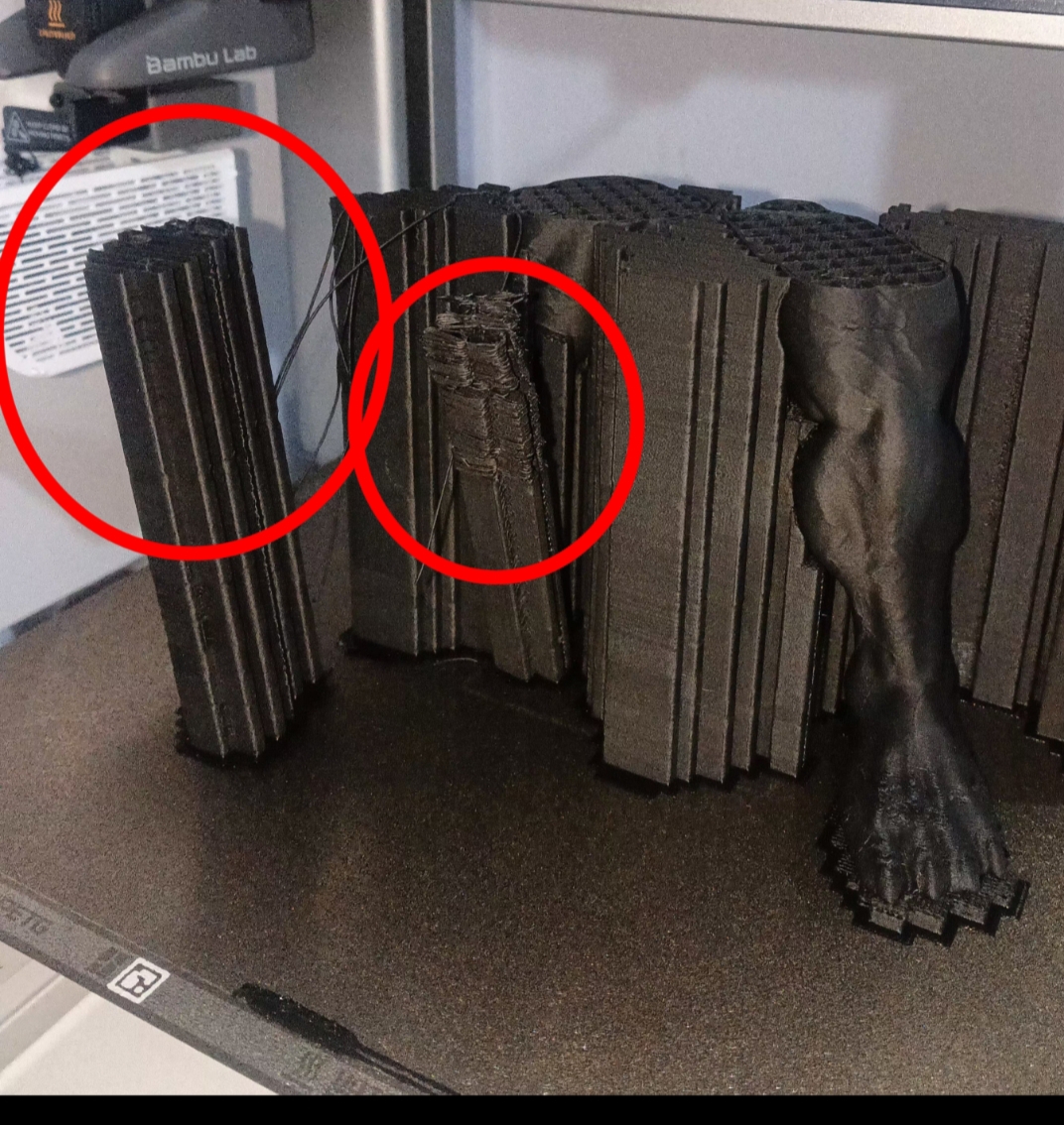Yüksek hızdayken düşük ekstrüzyon olduğunda da bazı küçük filament artıkları modele veya desteğe sürterek baskıyı bozabiliyor veya desteği kırabiliyor.