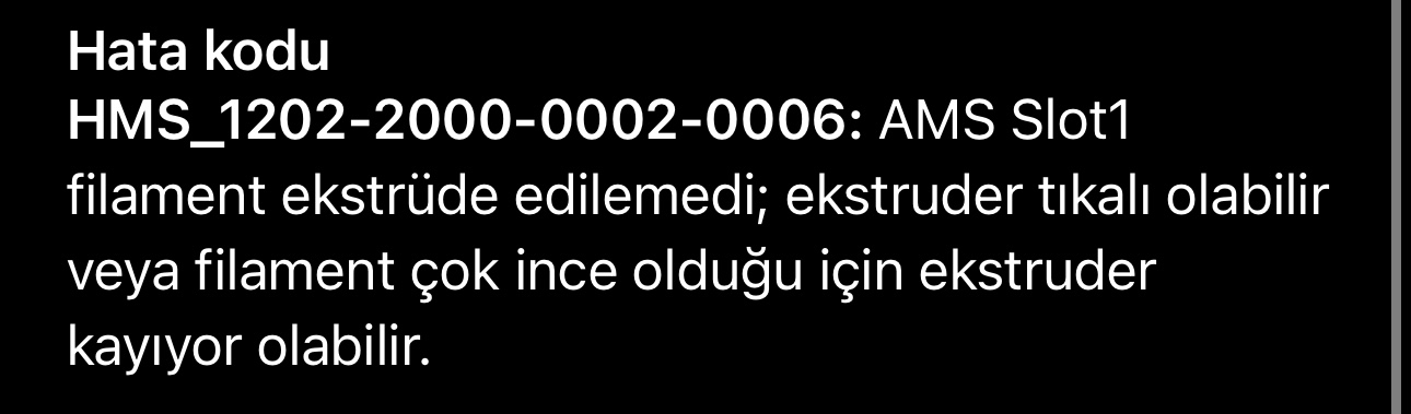 Ama farklı filamentle de aynı hatayı alıyorsanız, extruder içini açıp temizlemenizde fayda var. İçeride parça kalmış olabilir. Ayrıca filament çapını da kontrol edin; 1.75 mm olması gerekiyor. Çap toleransı bozuksa bu tarz hatalar verebiliyor.