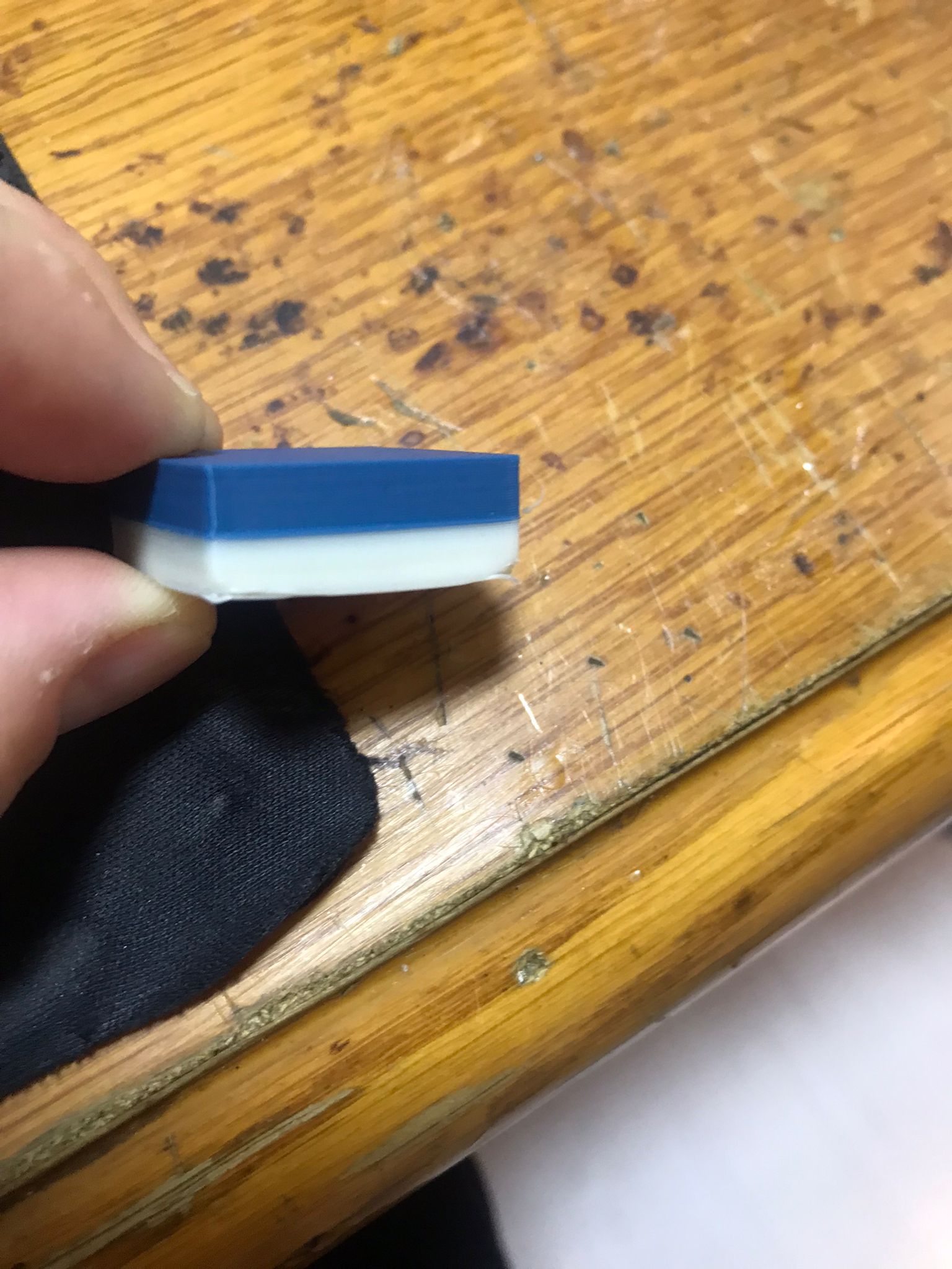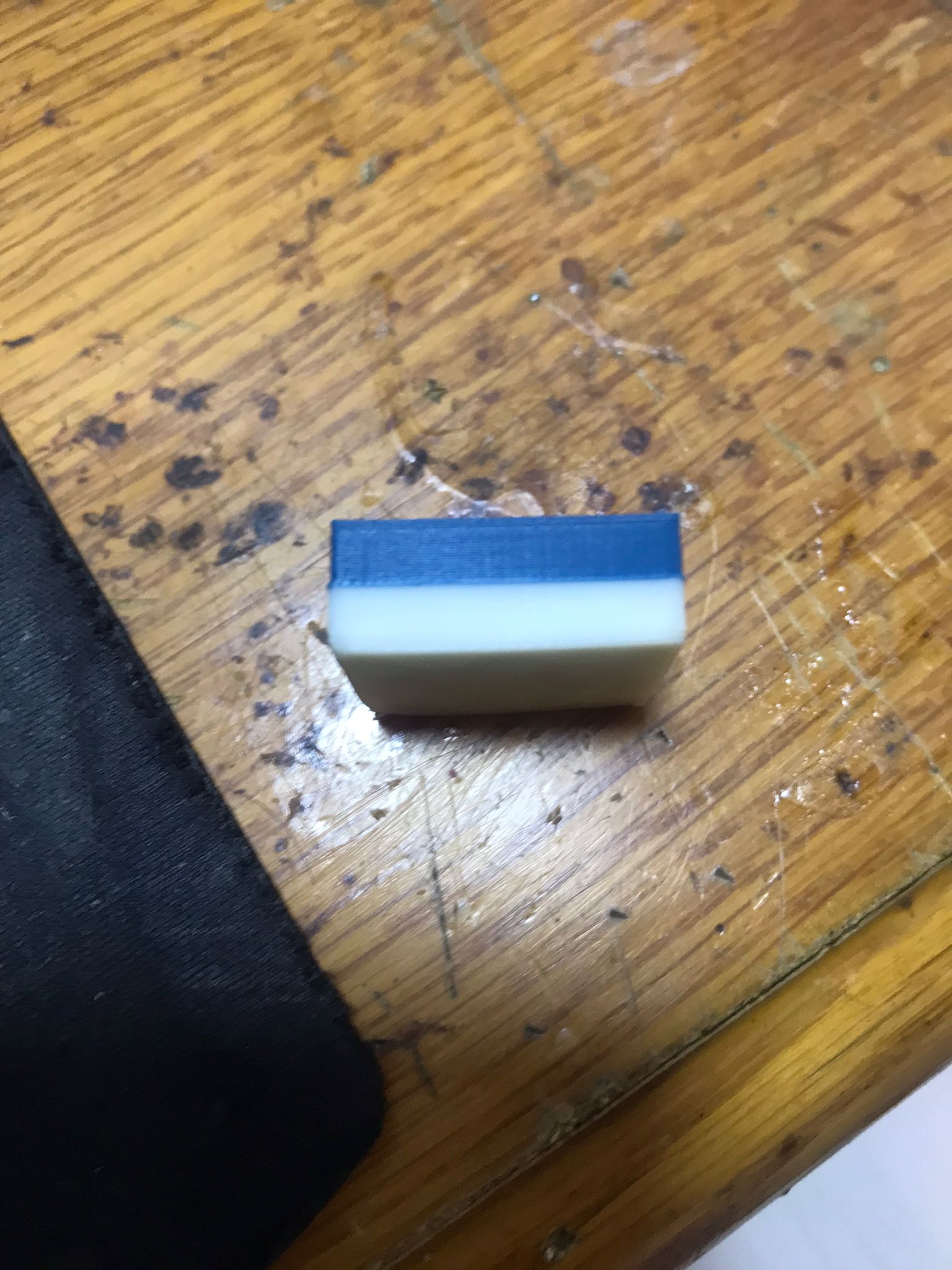 ABS ve PLA'nın kimyalarında çekme oranları farklı olduğundan tam renk geçişinde elle fark edilebilen hafif çıkıntı oluştu.